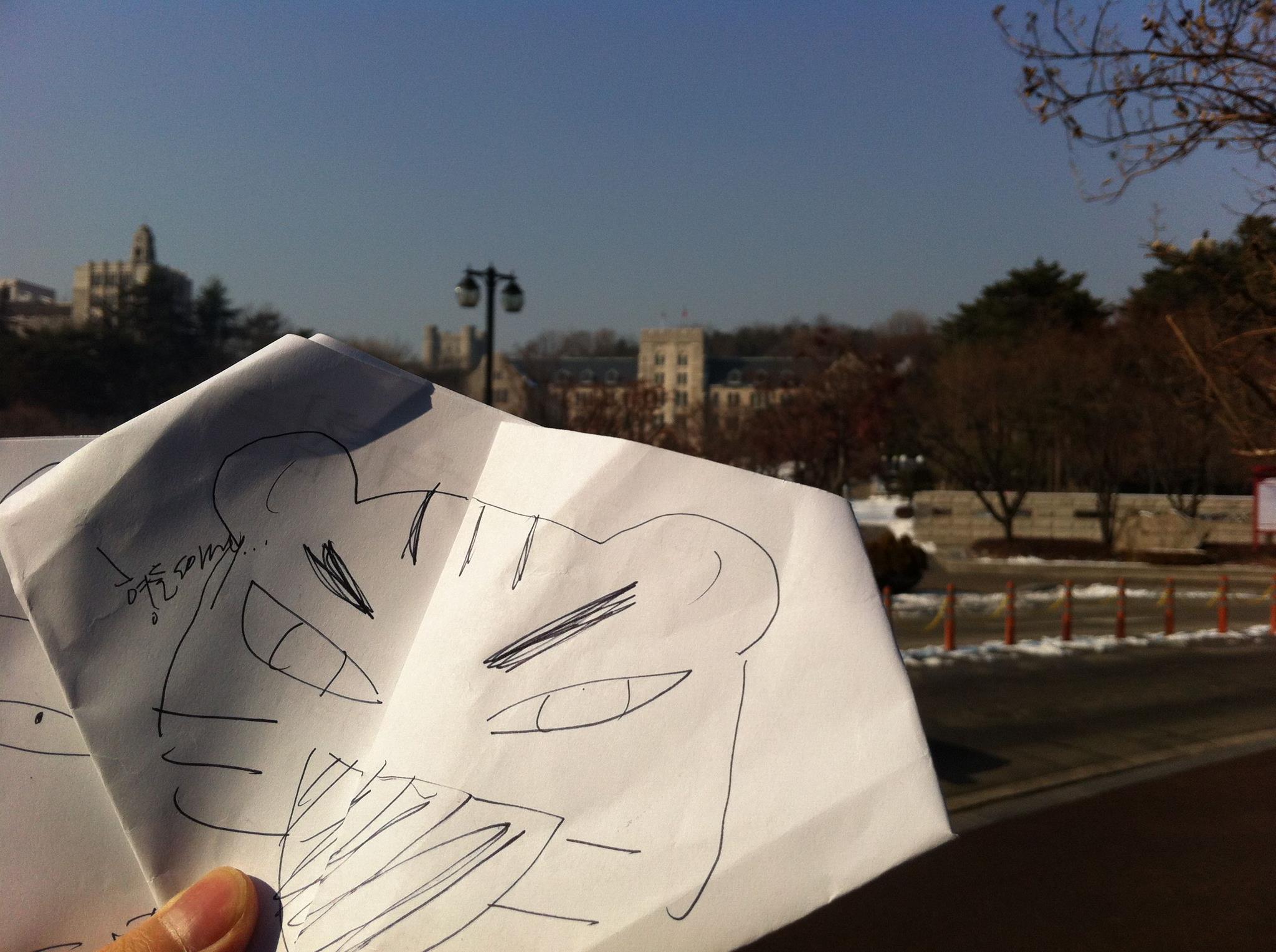 9. 백주념 기념관 앞에서 우리 횽이 빙닭처럼 쪽지 들고 달리니까 어떤 횽아가 "혹시.. 그거 운영자세요?"