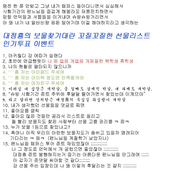대정횽의 보물찾기대란 꼬질꼬질한 선물리스트