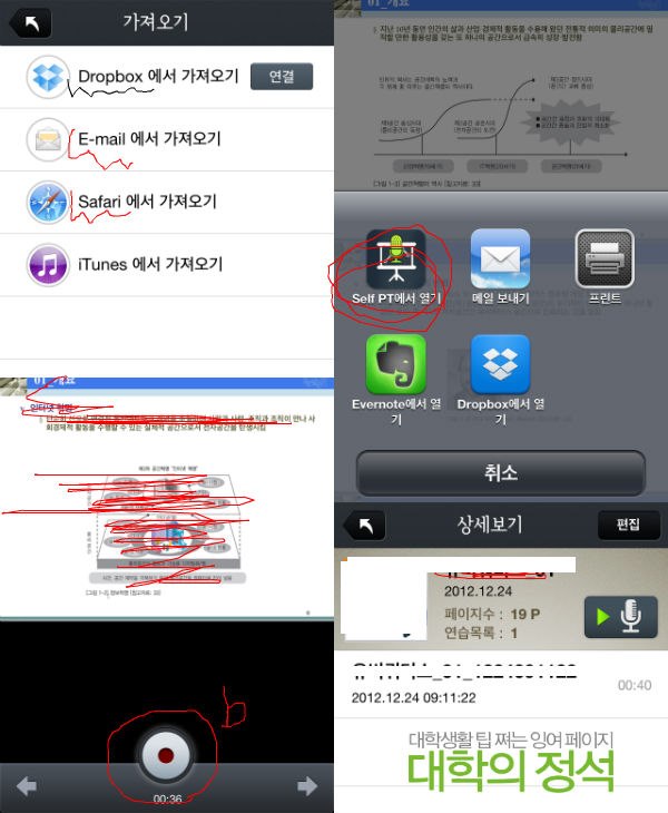 나도 발표팁에 관해서 '이거슨 갑이닿!'싶은 팁은 없음ㅇㅇ 발표만큼은 꼼수로하기 참 어려운 것 같음ㅇㅇ 연습이 갑인듯. 그런 의미에서 이 어플은 연습하기 겁나 쉬운 툴. 피티 가져오기도 편하고 피티보면서 조용히 혼자 연습하고 시간도 잴 수 있고 내가 녹음한 거 보면서 자체적으로 피드백도 가능함여ㅇㅇ