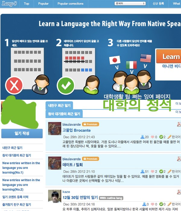 이미지 사이트의 현재 주소는 https://lang-8.jp/en/ 입니다만,